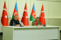 Ադրբեջանի Հանրապետության պաշտպանության նախարար Զաքիր Հասանովը և Թուրքիայի Հանրապետության ազգային պաշտպանության նախարար Հուլուսի Աքարը համատեղ մամուլի ասուլիս են անցկացրել՝ Հեյդար Ալիևի կենտրոնում։